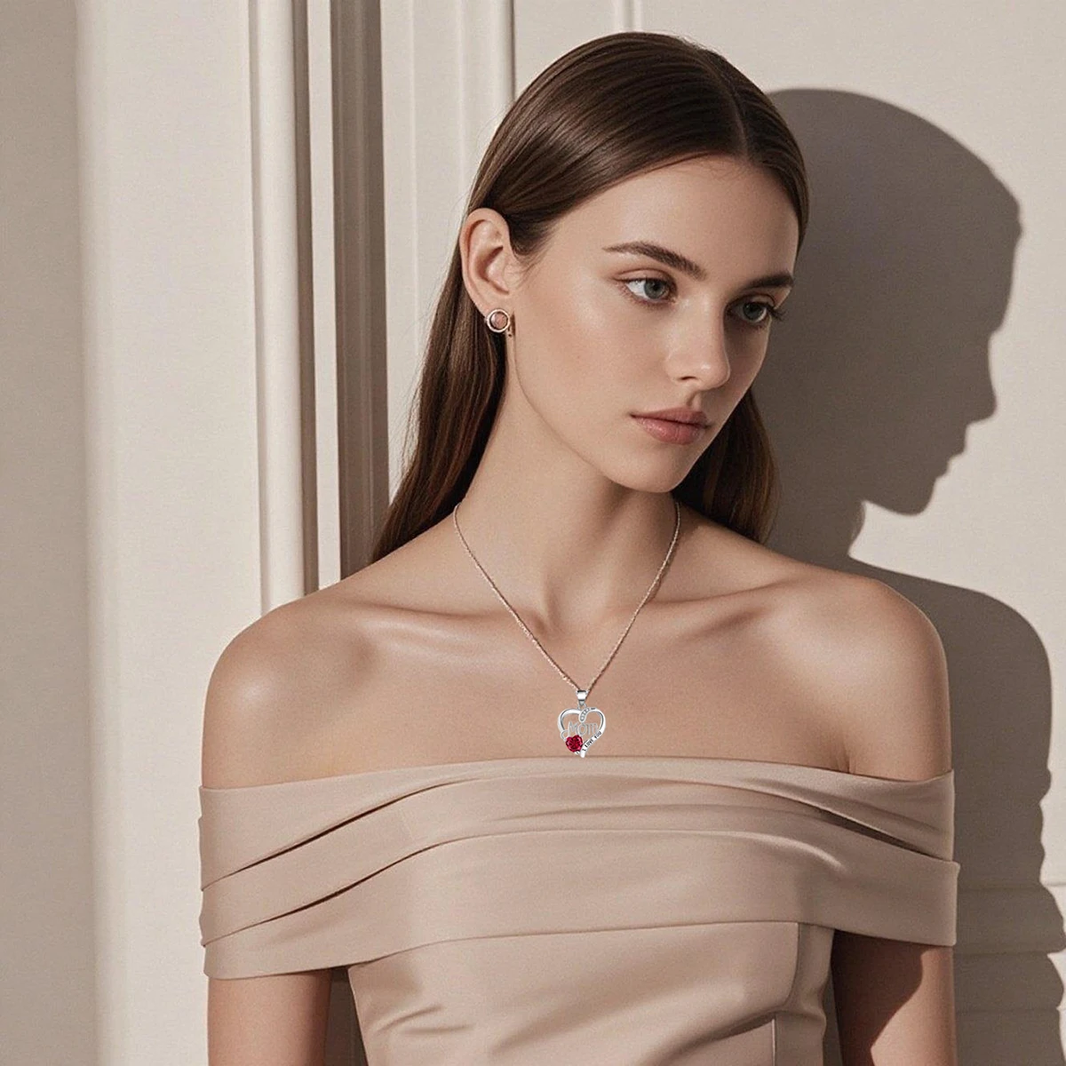 π Birthstone Heart Pendant Necklace with Eternal Rose Bear Gift Box