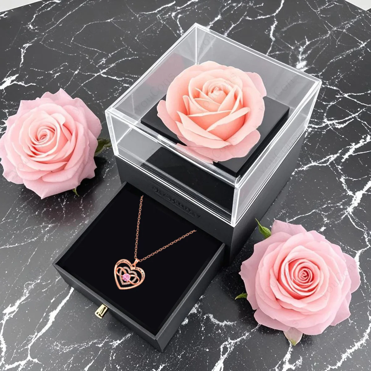 This isn't just another necklace – it's a complete romantic experience. When she opens the elegant box to reveal the forever rose and sparkling heart necklace, along with your personal message and the "You Will Always Be My Forever" sentiment, she'll know you put real thought into her gift. It's the kind of moment that creates memories that last a lifetime.