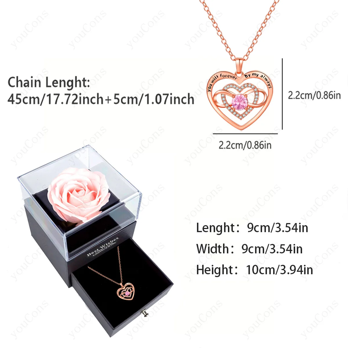 Heart Zircon Necklace with Forever Rose | Christmas Gift for Her