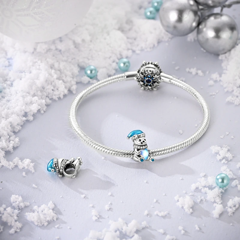 Adorable 925 sterling silver Christmas charms featuring a playful polar bear, jolly Santa, spinning carousel, and cheerful snowman ā the perfect way to celebrate the season in style.